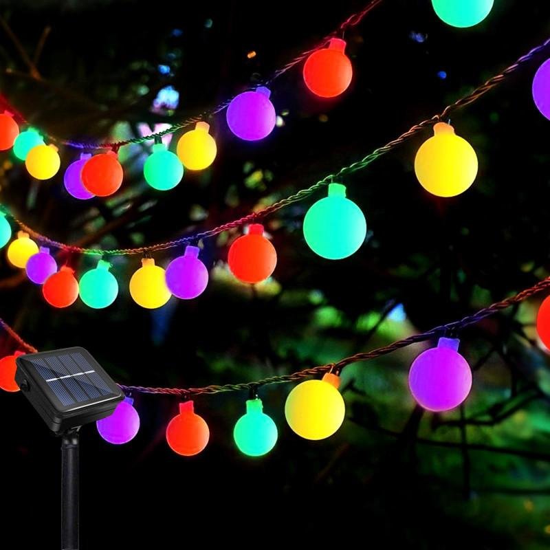 Solar Christmas Globe String Lights - 10M, 100 Multicolor LEDs, 8 Modes, IP65