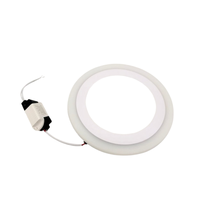 - Dual-color design (White + Blue) – stylish recessed round panel with decorative outer ring