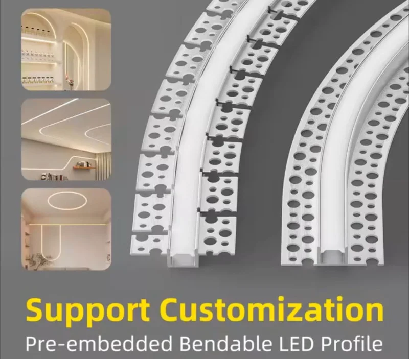 The AIDEN Flexible Bendable LED Aluminum Profile is a premium-grade recessed channel designed for creative lighting integrations in curved ceilings, walls, and drywall décor. With a 3-meter length and a 20x12mm profile, it features a soft silicone diffuser and bendable aluminum body—ideal for hidden strip lighting in architectural contours.